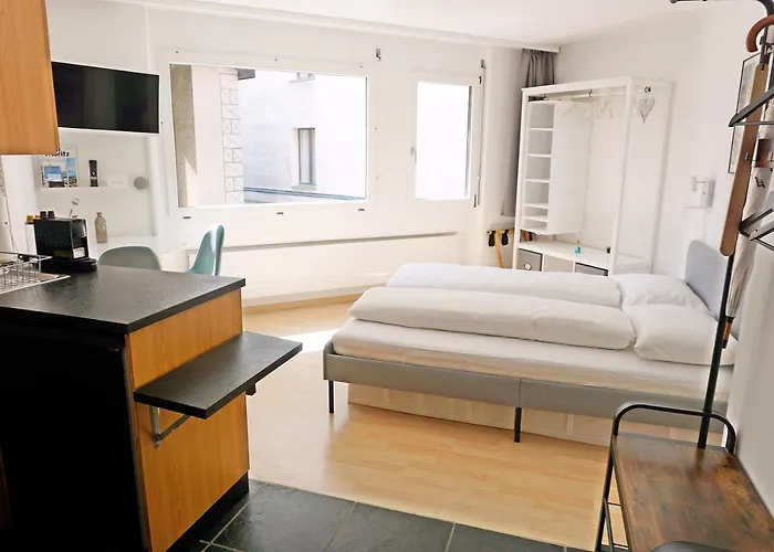 A 24 m^2-es Schick Und Freundlich, Zentral, Modernes Studio - C5 Apartman St. Moritz olyan turisztikai látványosságok közelében található, mint a csak 5 percnyi sétára található Schiefer Turm. Az utazás élményének változatosabbá tétele érdekében a vendégek számára túrázást és síelést kínálnak.
